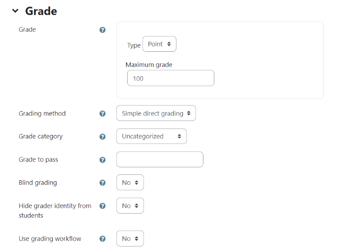 • Point: allows you to set the maximum point value for the assignment.