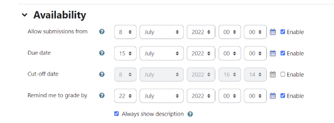 Feel free to contact the helpdesk if you have questions about the settings on any activity or assignment helpdesk@emu.edu.