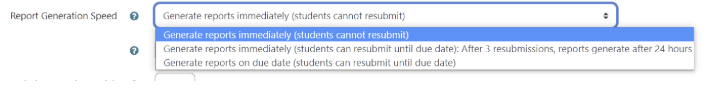 You can decide if students are allowed revisions before the cutoff date if they do not like the results of their similarity report by changing the report generation speed.