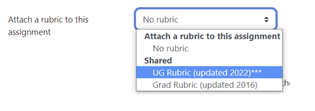 You can add the standard EMU UG/Grad Rubric by attaching a rubric from the dropdown.